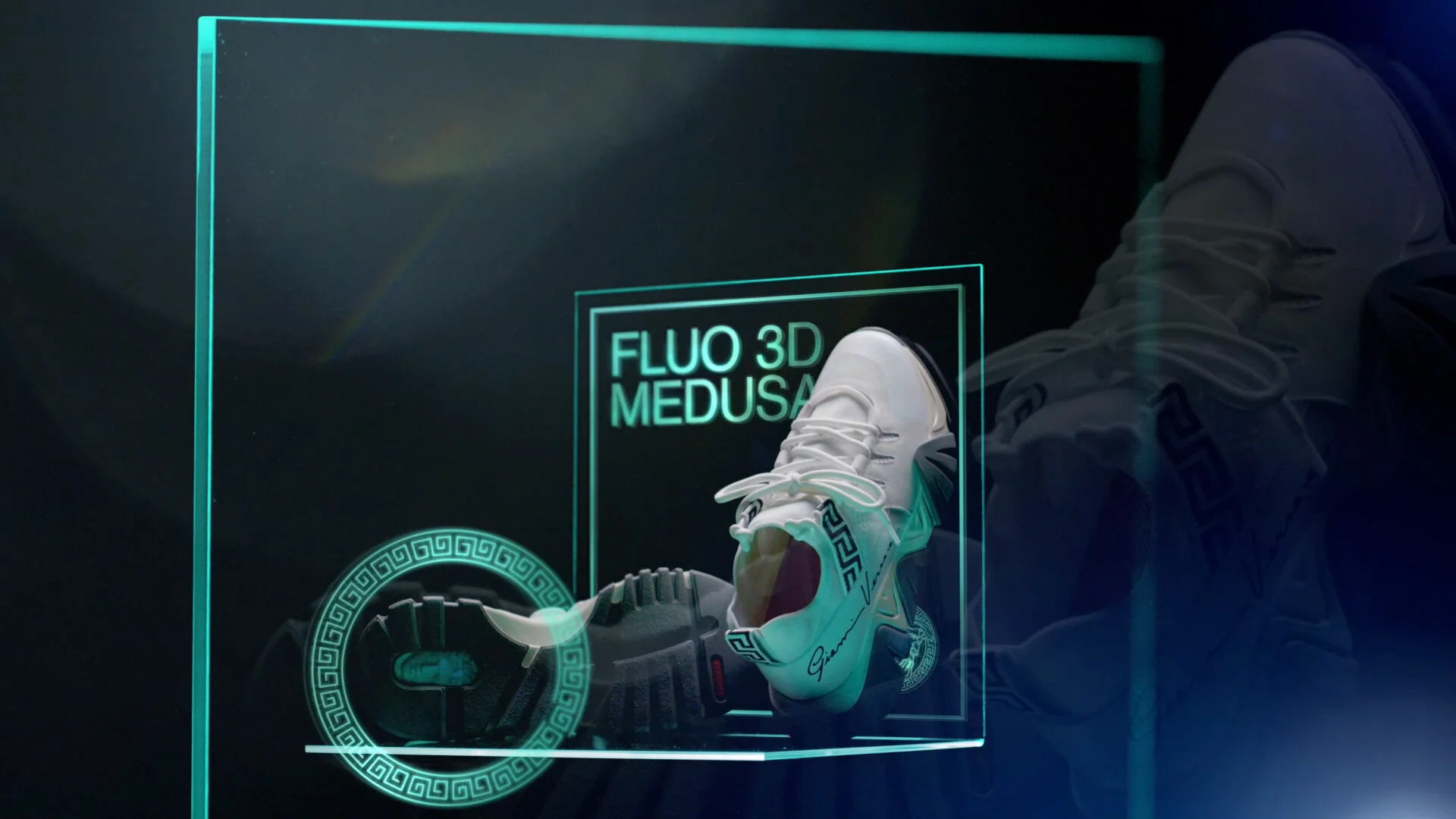 Inspired by Versace’s Spring-Summer 2020 campaign’s focus on modern technology, the Squalo sneakers are showcased in a setting that celebrates the digital era. The films feature a strong graphic aesthetic used to highlight the various design features of the shoe. Layers of acrylic, shot in-camera, with graphic elements tracked in and composited add up to an overall organic, textured aesthetic.